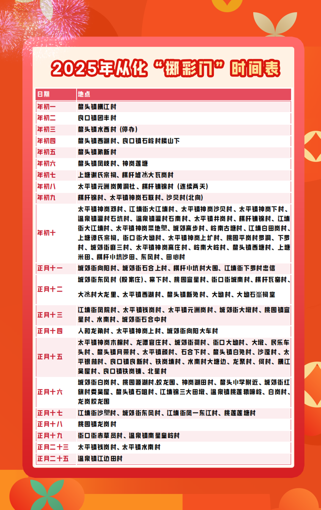 (具体时间可能会有变动,建议关注从化区文广旅体局或相关村委会的公告哦)